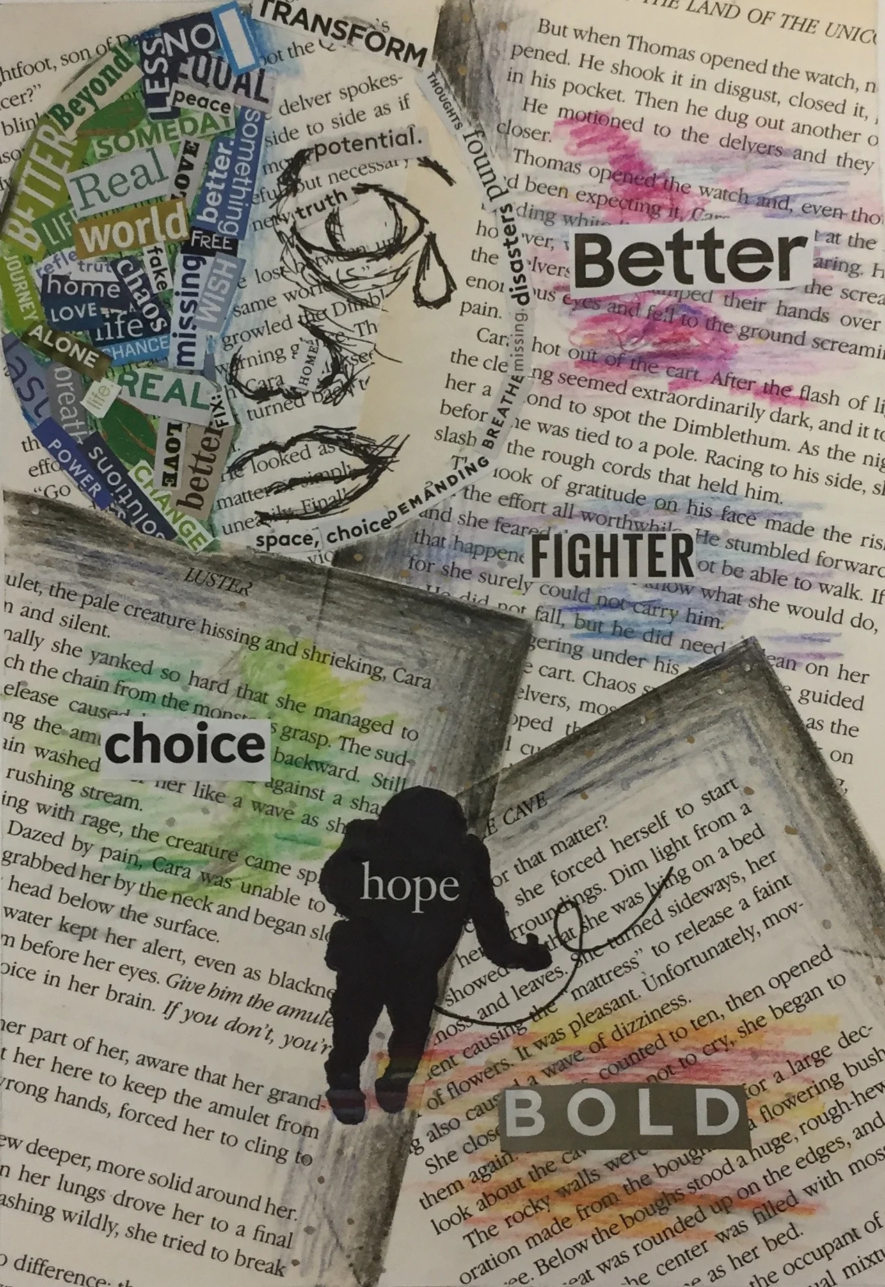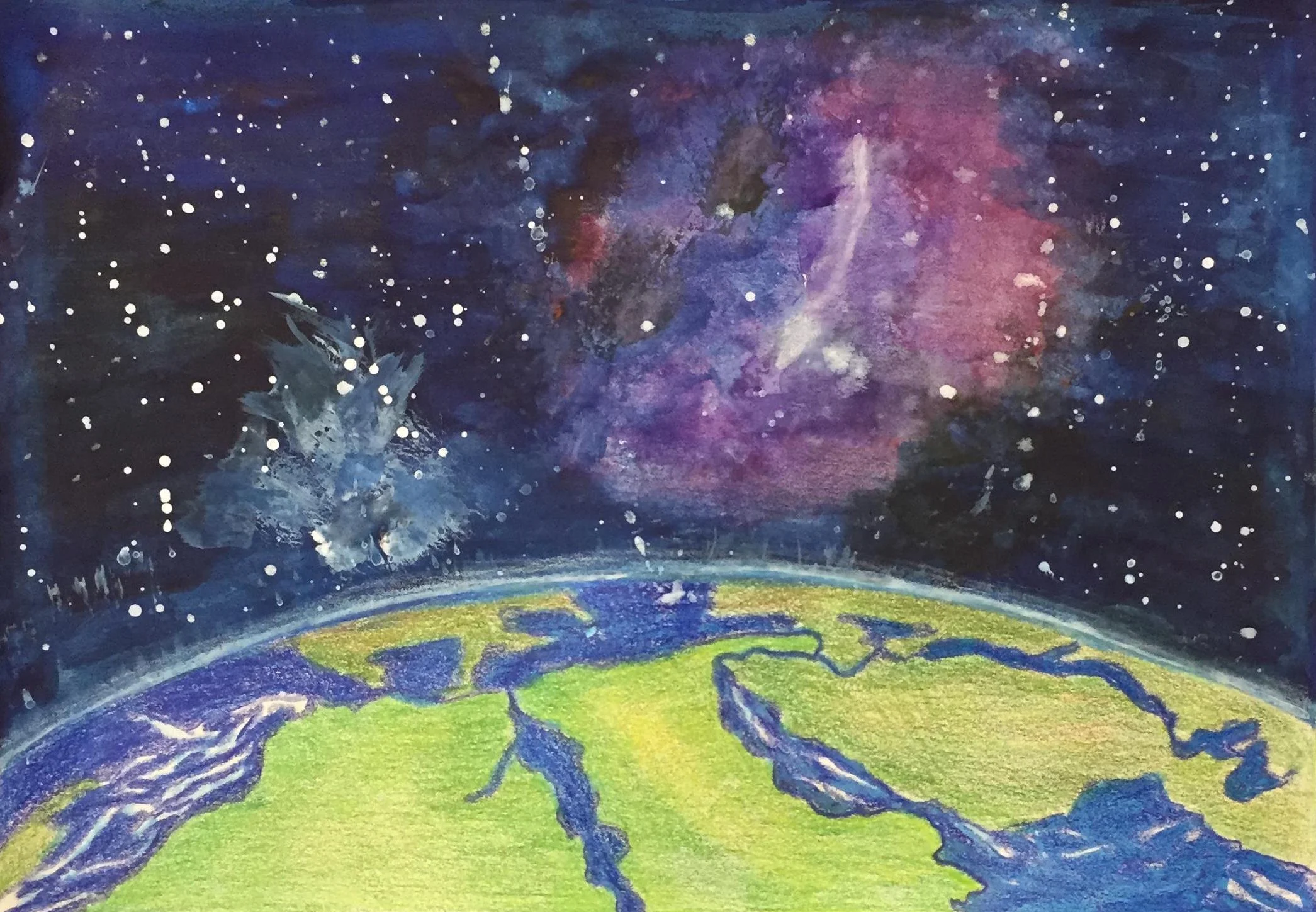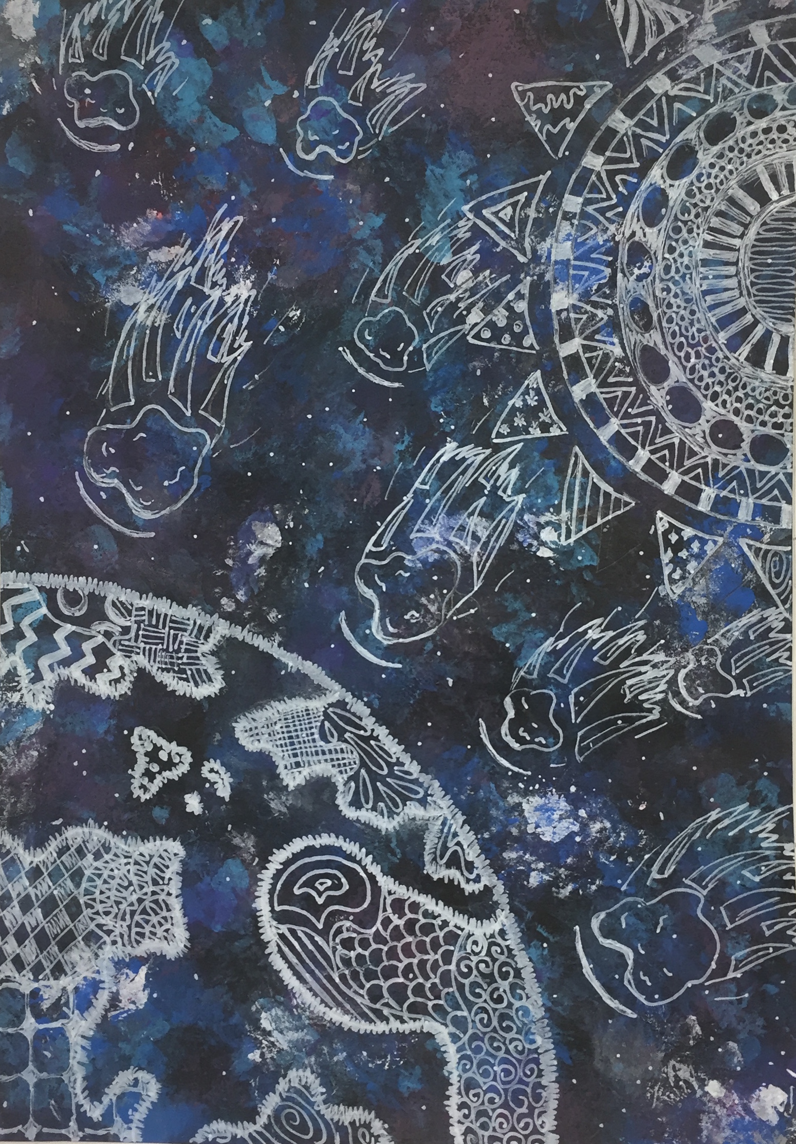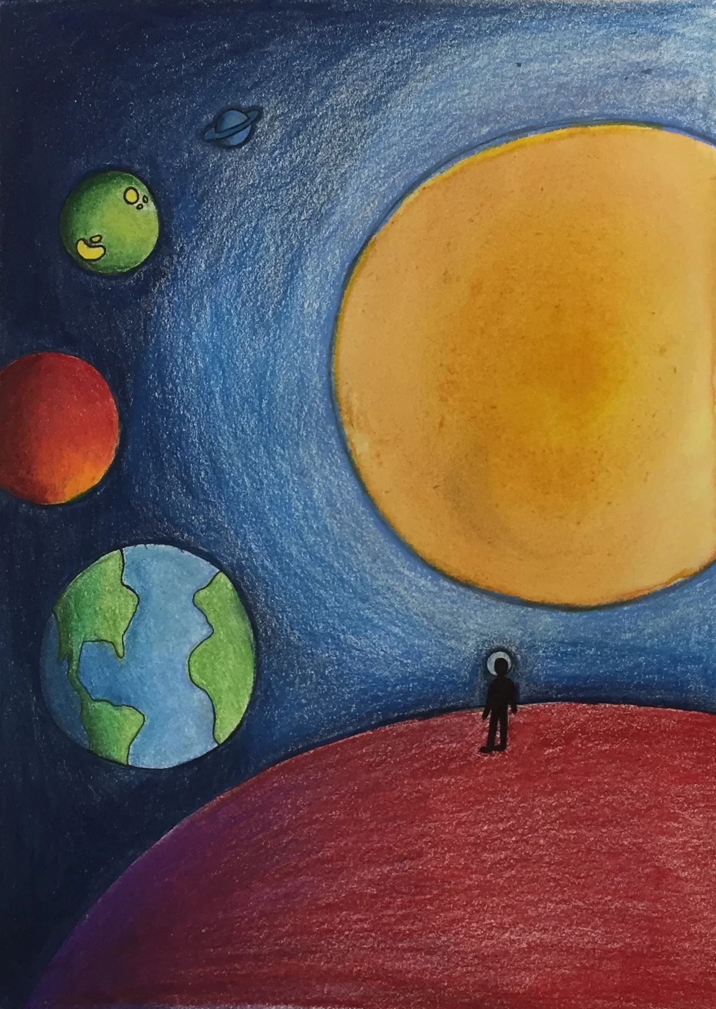 Below you will find art that was inspired by the music and story line of Space Walk. Charlie Lotspeich collaborated with the Art department (Shannon Weaver and Kari Dollar) at his former school (Coppell Middle School North) to have the students create pieces centered around the project. This art was featured at the event as a gallery. Students listened to the music and read the story line, here is what they came up with!