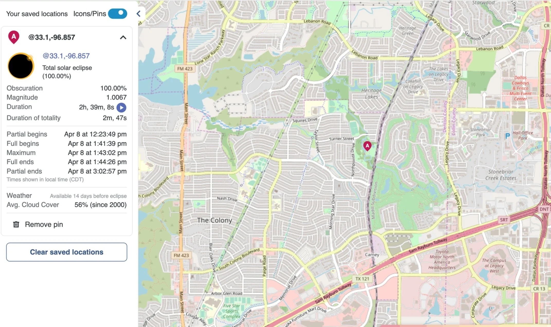Here is the specific information about the path of totality in your area: Eclipse Path